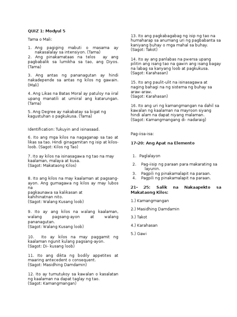 G10 Modyul 5 Handouts Pdf Modyul 5 Ang Pagkukusa Ng Makataong Kilos Voluntariness Of Human Act At Mga Salik Na Nakaaapekto Sa Pananagutan Ng Tao Sa Course Hero