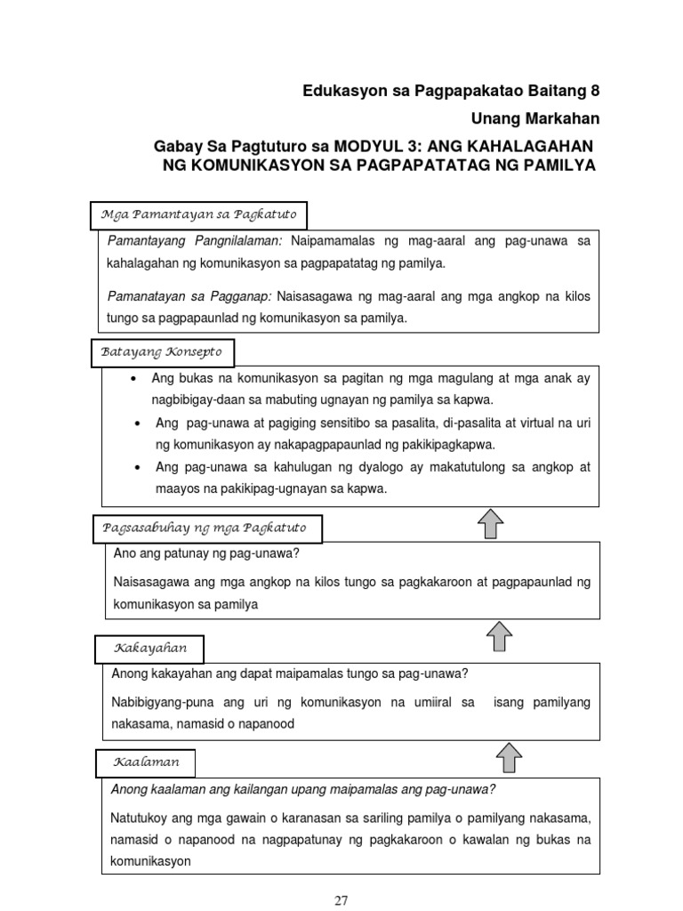 Komunikasyon mula sa salitang latin na communis na nangunguhulugang karaniwan o panlahat. Nabibigyang puna ang uri ng komunikasyon na umiiral sa isang pamilyang nakasama naobserbahan o napanood esp8pb ie 3 2 edukasyon sa pagpapakatao baitang 8. Ang kamay ay madalas gamiting simbolo ng kakayahan aksyon at layunin.
