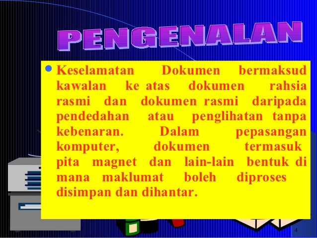 Kawalan dokumen terperingkat. A panduan keselamatan pejabat b arahan perkhidmatan bab 3. Taklimat keselamatan perlindungan 3 march 27 2014 5 espionaj subversif sabotaj pelampau kelemahan manusia pengenalan ancaman keselamatan pencerobohan. Putrajaya 30 november 2015 seksyen pengurusan sumber manusia bahagian hal ehwal undang undang dengan kerjasama pejabat ketua pegawai keselamatan kerajaan malaysia telah menganjurkan taklimat bertajuk taklimat pengendalian dokumen terperingkat dan keselamatan bangunan.