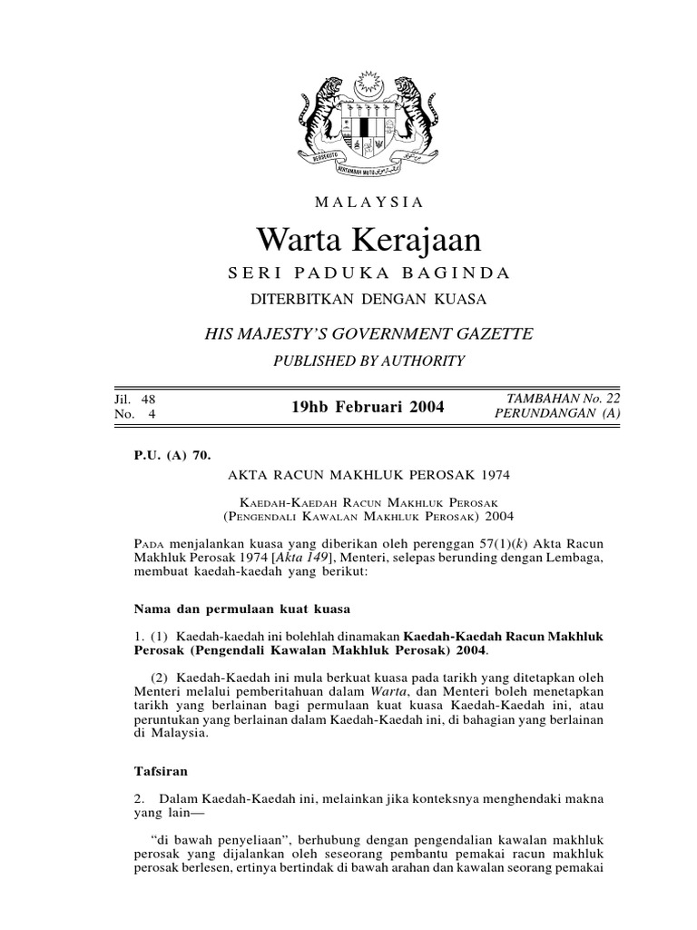 Akta Racun Makhluk Perosak 1974 Kaedah Rmp Pengendali Makhluk Perosak 2004
