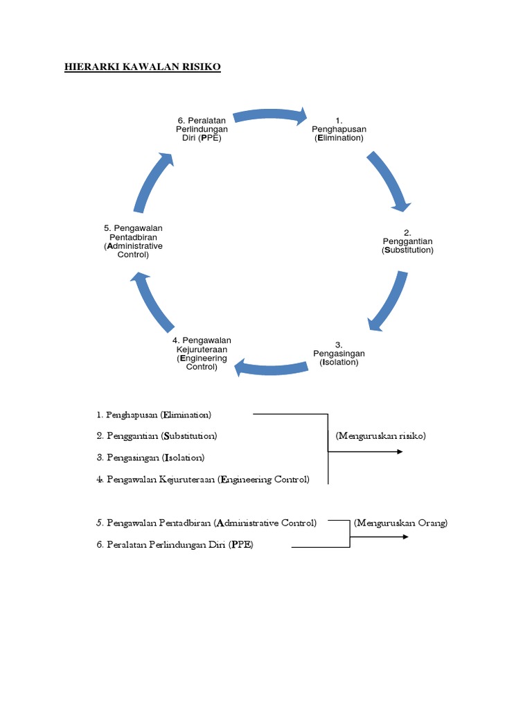Lima hierarki kawalan risiko. Ini adalah kaedah yang terbaik. Perlindungan penghapusan diri ppe elimination. Pengenalpastian bahaya hi pengenalpastian kejadian yang tidak diingini yang membawa kepada wujudnya bahaya hazard dan mekanisme yang membolehkan kejadian yang tidak diingini itu berlaku.