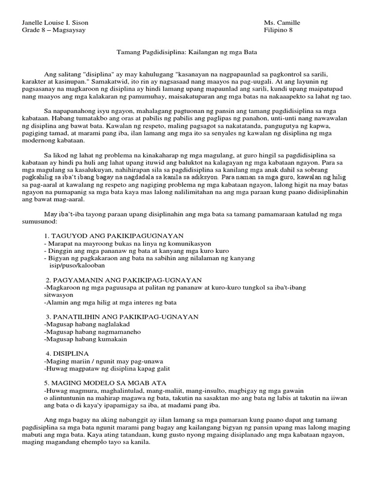 Doc Paraan Ng Pagdidisiplina Nioni Pedrigal Academia Edu