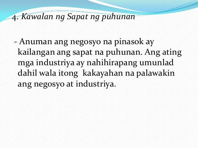Ang unemployment o kawalan ng trabaho ay suliraning kinahaharap ng anumang bansa. Masalimuot na paraan para makapagtatag ng negosyo 14. Linangin ang mga kakayahan at kaalaman ng mga pilipino.