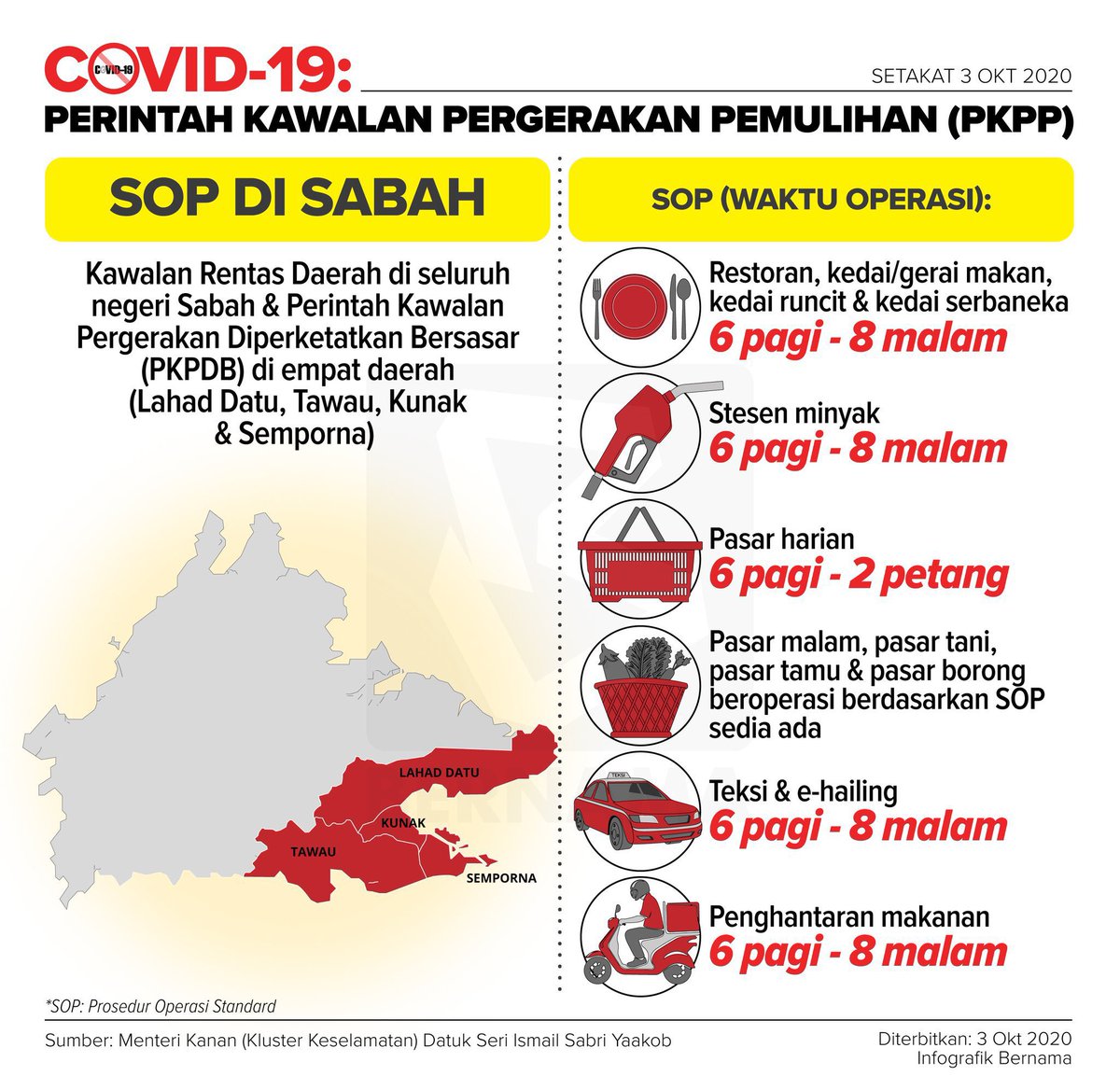Bernama Tv On Twitter Infografik Covid 19 Perintah Kawalan Pergerakan Pemulihan Sop Di Sabah Setakat 3 Okt 2020 Infographics Covid 19 Recovery Movement Control Order Sop In Sabah As At Oct 3 2020 Https T Co D1qmim7koa