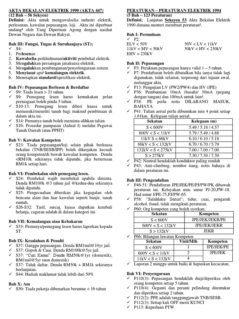 Jabatan Elektrik Ikm Kota Kinabalu Sabah Akta Bekalan Elektrik 1990 Peraturan Peraturan Elektrik 1994