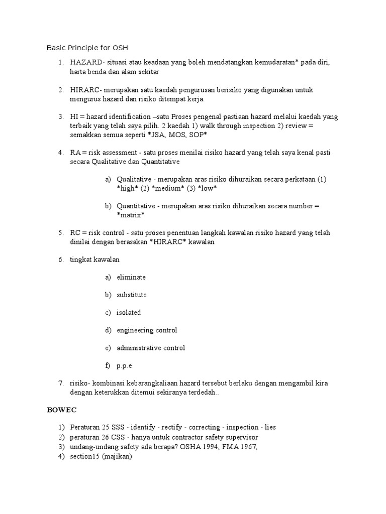 Identifikasi hazard penilaian risiko hazard aktiviti risiko kesan l s lxs tahap risiko memeriksa peralatan wayar terdedah kelengkapan dan mesin renjatan elektrik 3 4 12. Maklumbalas yang diterima dari pengukuran pencapaian digunakan di setiap peringkat system pengurusan agar segala perubahan kawalan yang lebih sesuaian. Kren menghalang lalu lintas boleh menyebabkan kemalangan melibatkan kenderaan lain lencongan trafik hadangan kawasan kerja 2 unjurkan outriggers 2 1.