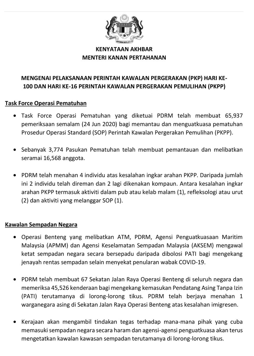 Mindef Malaysia Auf Twitter Kenyataan Akhbar Menteri Kanan Pertahanan Perintah Kawalan Pergerakan Pemulihan Pkpp 25 Jun 2020